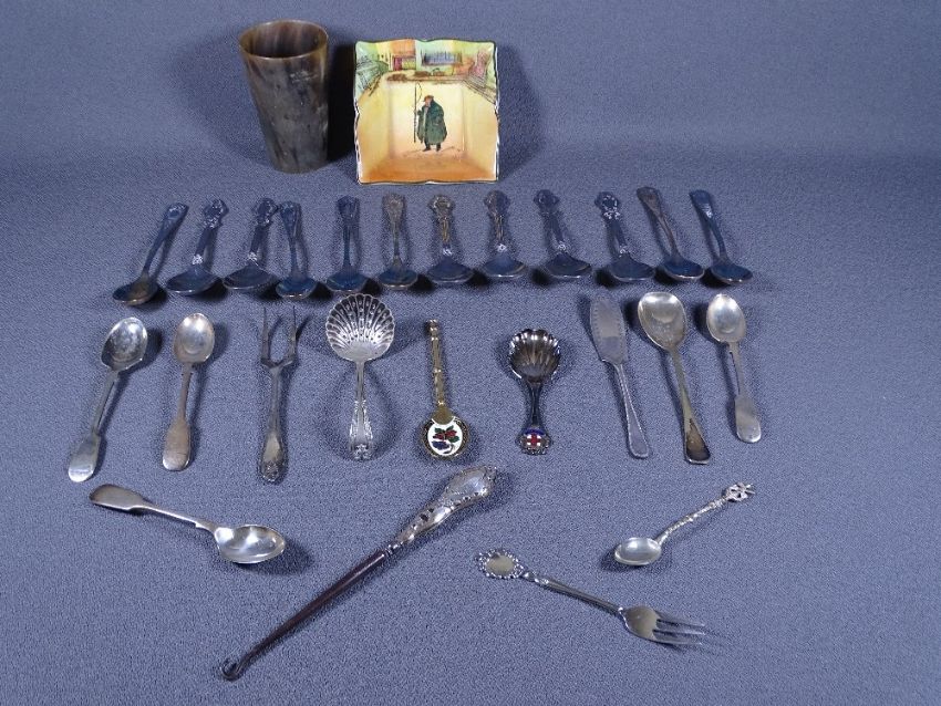EPNS CUTLERY, Royal Doulton dish, horn beaker ETC