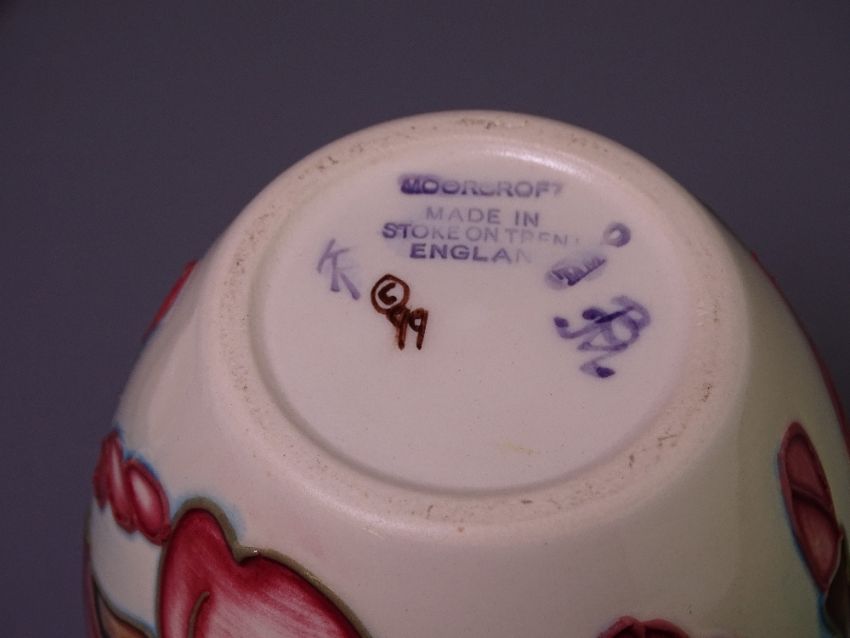 MOORCROFT FRANGIPANI GINGER JAR & COVER, designed by Emma Bossons, 11cms overall height, impressed and painted factory marks to the base, dated '99 in original box (no condition issues)