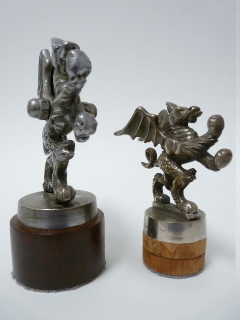 VINTAGE CAR MASCOTS X 2 - WELSH DRAGONS circa 1920s, 11cms H, and 8cms H.