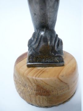 VINTAGE CAR MASCOT-CLAIR de LUNE/MOONLIGHT cat on moon, seated, after E T Mercier, French, bears signature and stamped Paris 1923, 11.25cms H.