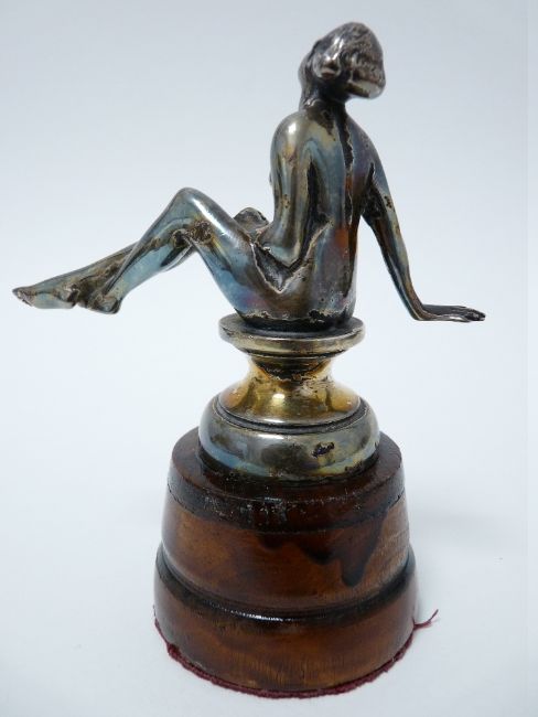 VINTAGE CAR MASCOT-BRITISH CALTHORPE SEATED LADY by A E Lejeune, circa 1920, stamped AEL with Calthorpe to front, 8.5cms H, 10.5cms L.