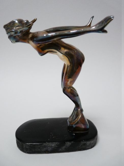 VINTAGE CAR MASCOT - ALBERT SPEED NYMPH marked R/D DES with indistinct numbers, circa 1920s, 16cms H.