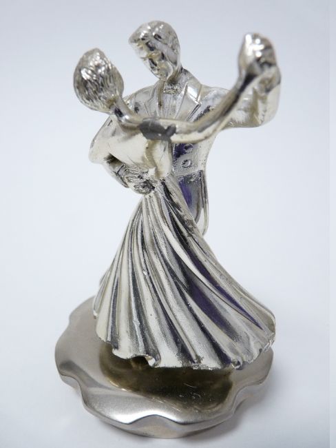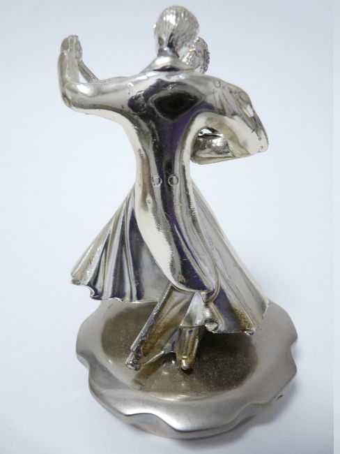 VINTAGE CAR MASCOTS X 2- DANCING COUPLES circa 1920- 1930s, chrome plated, possibly American for DANCER TRUCKS, 10cms and 18cms overall Heights.