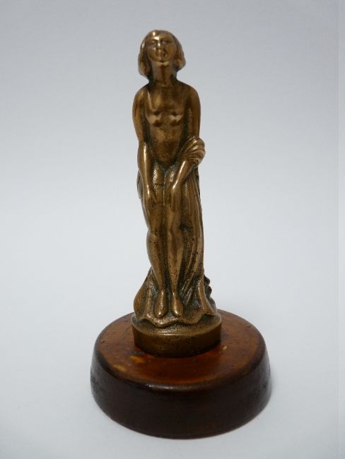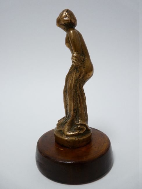 VINTAGE CAR MASCOT- STANDING WOMAN IN DRAPING SHAWL circa 1920s, unmarked, 12cms H.