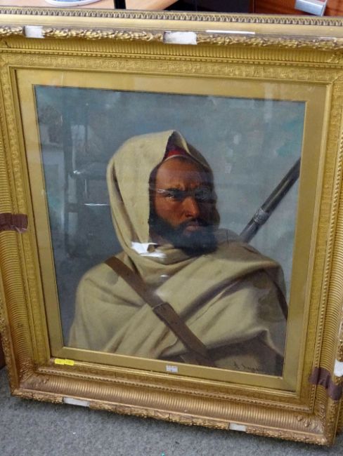 ANTONIO SCOGNAMIGLIO 19th century oil on canvas, a bedouin man, gilt framed. size 64 x 52cms