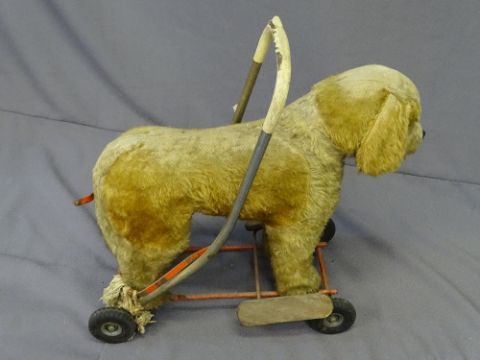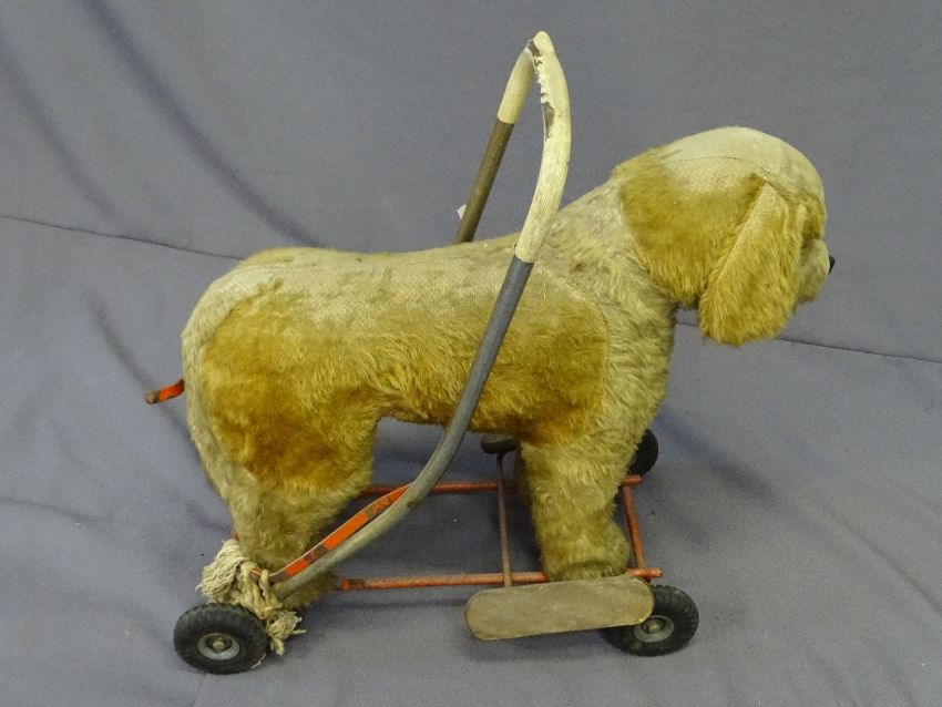 A TRIANG CHILD 'S PUSH-ALONG DOG on 4 wheels (ready for restoration)