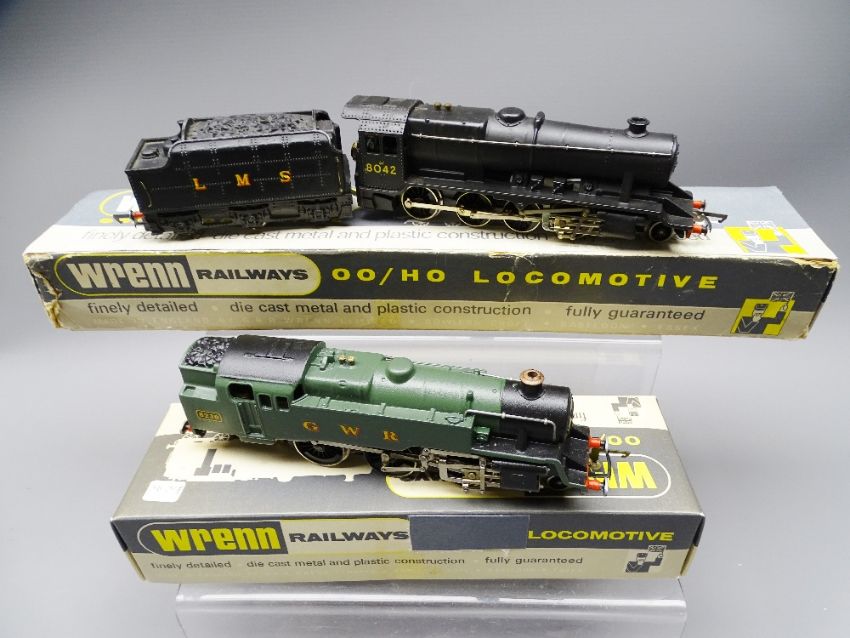 MODEL RAILWAY - Wrenn W2220 G.W.R. 2-6-4 tank locomotive boxed in a BO-BO box with a WRENN W2225 L.M.S. 8F freight loco with packing rings