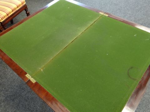 EDWARDIAN CARD TABLE & OVAL MIRROR (2)