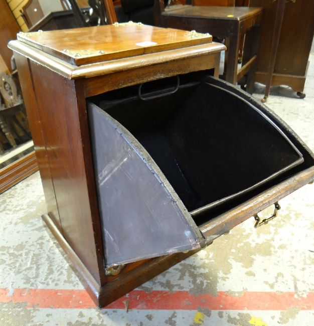 SMALL OAK & BRASS PURDONIUM with single drop-down door, 32cms wide