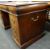 REPRODUCTION MAHOGANY WRITING DESK, two banks of three drawers, three further frieze drawers, gilt tooled red leather writing surface, 125cms wide x 66cms deep