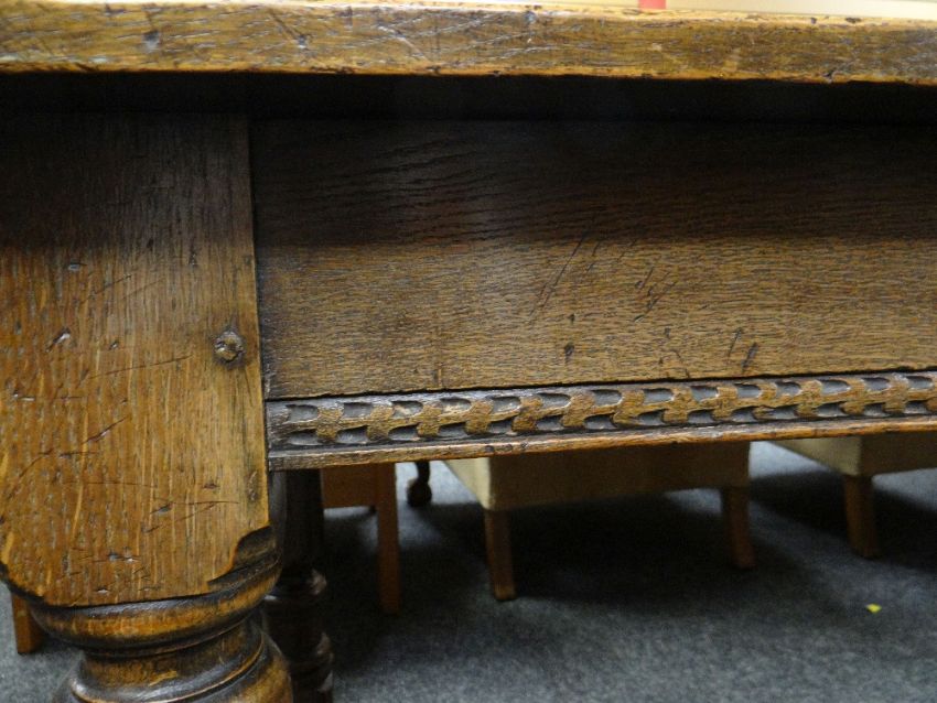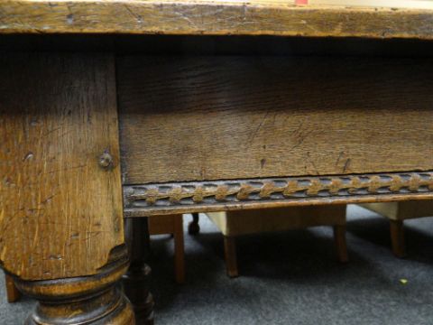 Condition Report: old repairs, possibly reduces in height, central bar stretcher probably added.
