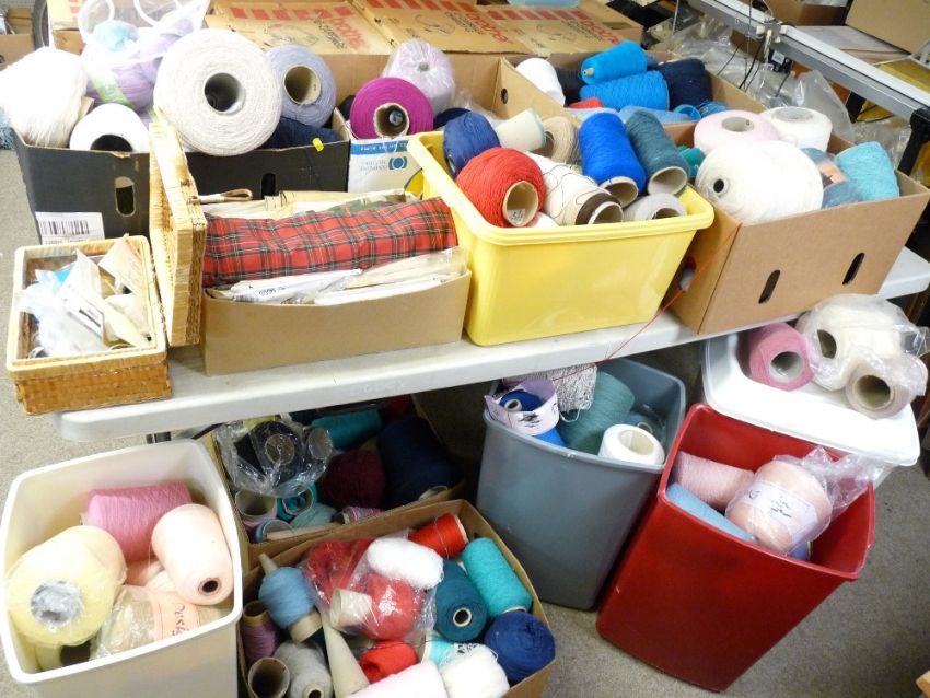 KNITTING MACHINE WOOLS & YARNS, a large quantity of various lengths and colours in eleven boxes and plastic crates along with a boxed quantity of clothing patterns and needlework items