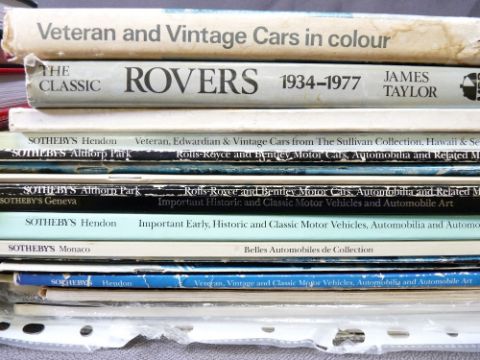 AUTOMOBILE COLLECTORS BOOKS-A QUANTITY to include The Complete Catalogue of British Cars- Culshaw & Horrobin (lacking dust cover), Whitbread-250 years of Brewery Transport- Arthur Ingram, James Taylor- The Classic Rovers 1934-1977 and Rover P4 The Complete Story, Motor Museum, Millers Guides x 2 Etc along with a quantity of Sotheby`s and other sale catalogues.
