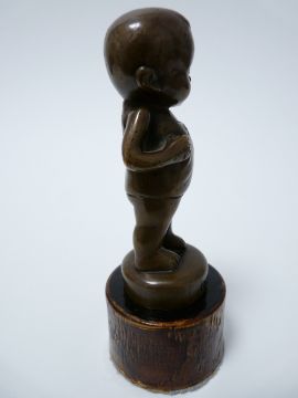 VINTAGE CAR MASCOT-STANDING CHILD-OUR KID stamped, rare, 9.75cms H