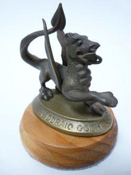 VINTAGE CAR MASCOT - WELSH DRAGON after Tom Nortons Ltd 1921/1924 (of the original approx 150 sold including to Sir David Lloyd George) the base worded 'Y Ddraig Goch Ddyry Gychwyn', 8.5cms H, 10.5cms L.