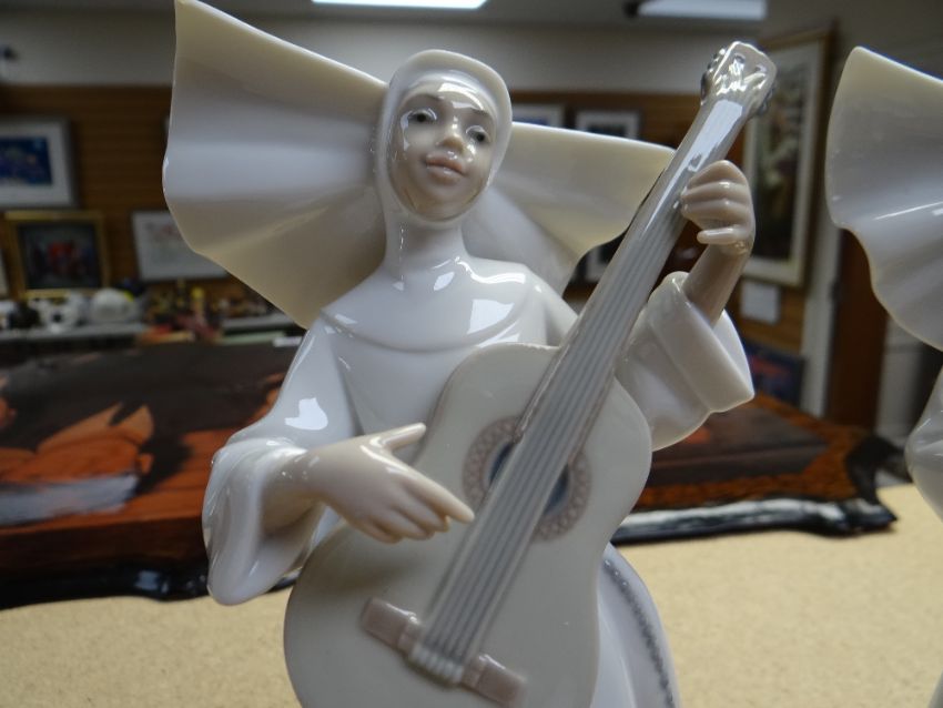PAIR OF LLADRO FIGURINES OF MUSICAL INSTRUMENT PLAYING NUNS (2)They are both 22cms high.They have impressed 6404 & 6406 underneath.