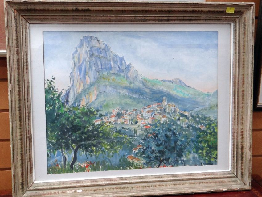 MICHAELIS watercolour - Provence landscape with town, signed, 44 x 56cms