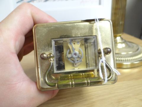 FRENCH BRASS CARRIAGE CLOCK bearing Roman numerals, inscribed 'Bernard Freres, Montbeliard', 11cms high