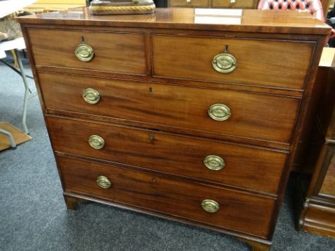 19TH CENTURY MAHOGANY CHEST, fitted two short and three long drawers, on bracket feet, 108cms wide