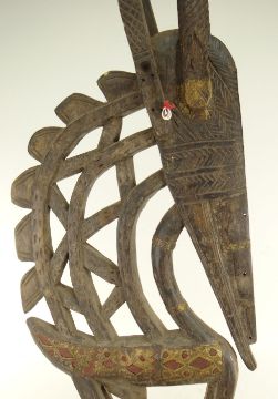 THREE BAMANA CHIWARA ANTELOPE HEADDRESSES all on woven fibre caps, tallest 146cms (3)