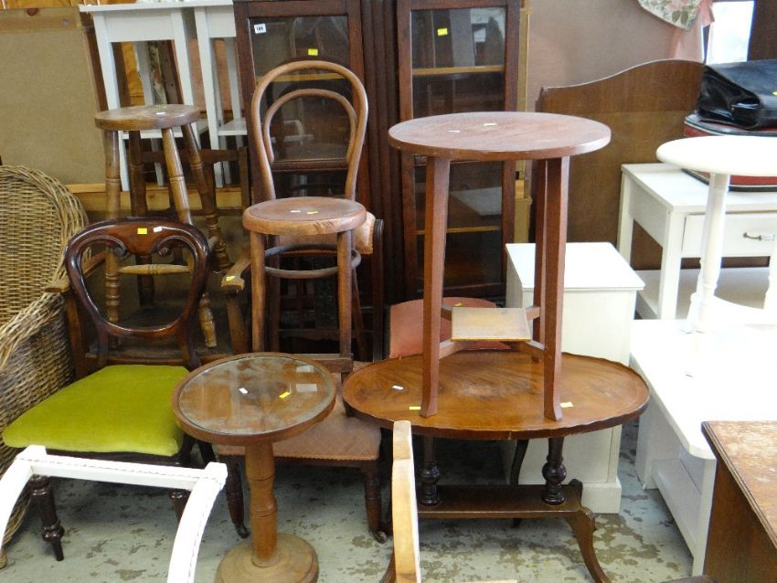 ASSORTED OCCASIONAL FURNITURE including chairs, stools, side tables and 1920s bookcase (11)