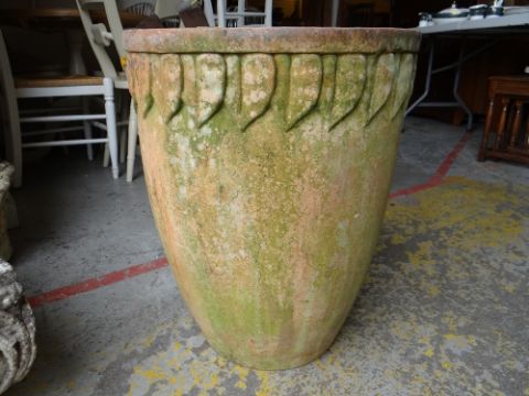 LARGE TERRACOTTA PLANTER with leaf decoration to rim, 49 x 59cms
