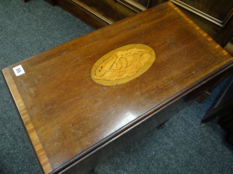 PRETTY EDWARDIAN MAHOGANY & SATINWOOD INLAID SUTHERLAND TABLE, 90 x 60cms