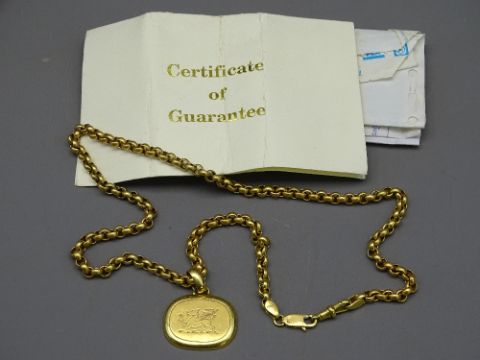 EIGHTEEN CARAT GOLD LINK NECK CHAIN, 37grms together with an oval gold pendant, 21grms (with original 2001 guarantee and other paperwork, purchased Thailand)