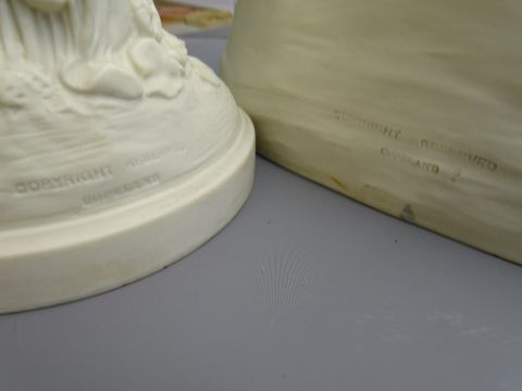 THREE PARIAN FIGURAL ORNAMENTS depicting various scenes, the tallest 40cms H
