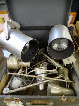 VINTAGE ANGLEPOISE TYPE & OTHER LAMPS in a wooden crate