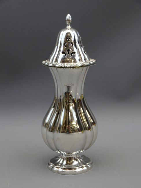 SILVER SUGAR CASTER of fluted baluster form, Birmingham 1957, maker Hampton Utilities, 6 troy ozs