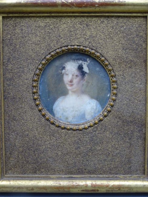 JOSEPH MARIE BOUTON PORTRAIT MINIATURE on ivory slip, signed, 6cms diameter (A/F)