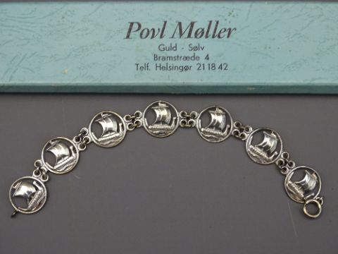 DANISH SILVER BRACELET of Viking boats design, maker Carl Ove Frydensberg, marked 'Sterling, COF, Denmark' in box