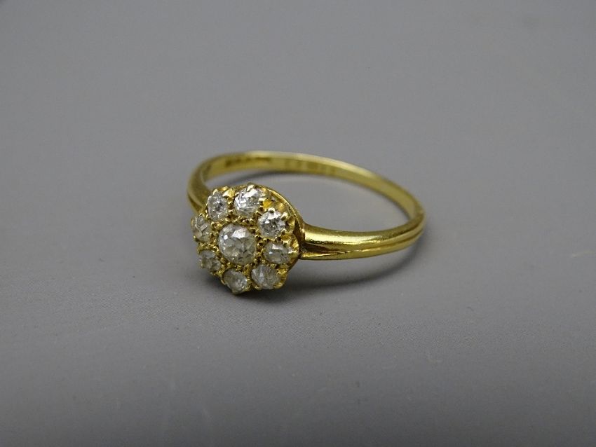 EIGHTEEN CARAT GOLD FLORAL DIAMOND CLUSTER RING, 2.9grms gross, visual estimate of diamonds, 0.5 carat