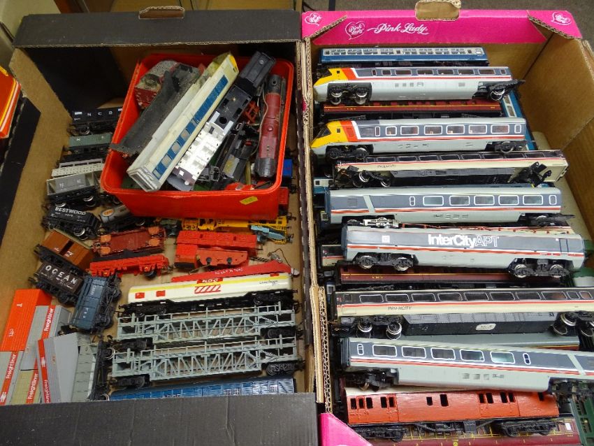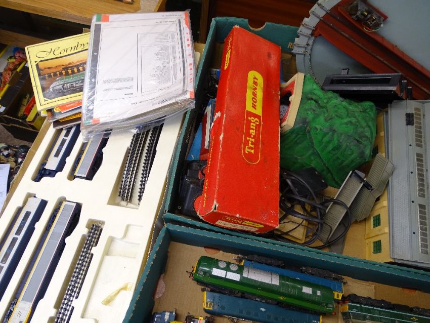 LOT WITHDRAWN-HORNBY MODEL RAILWAYS, a large collectors quantity including locomotives, diesel and electric engines, boxed and loose carriages, goods wagons and rolling stock with a quantity of layout material and track