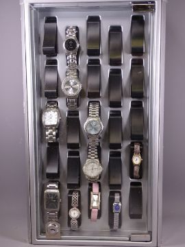 DISPLAY CASE OF 16 GENT'S & 7 LADY'S WRIST WATCHES