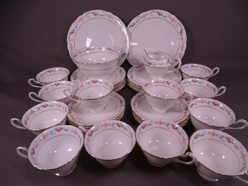 LATE FOLEY SHELLEY FLORAL CHINA WHITE GROUND TEAWARE, a parcel
