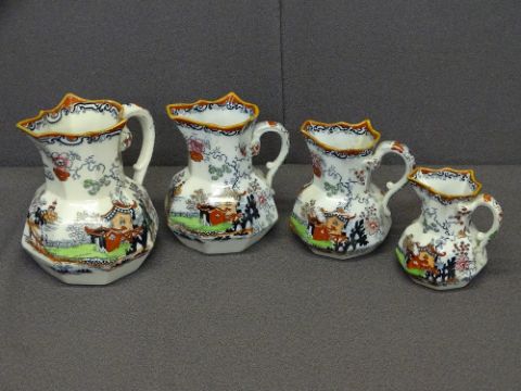 MASONS IRONSTONE SET OF FOUR GRADUATED ORIENTAL TRANSFER PATTERN JUGS (black mark)