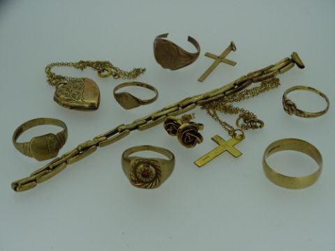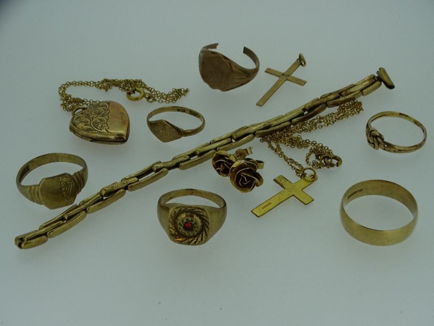 9CT GOLD MIXED JEWELLERY, a quantity, 27grms gross weighable with further unmarked and untested items