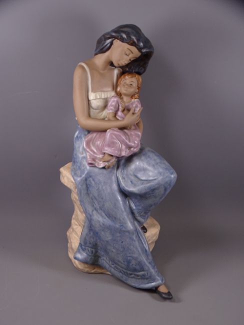 NAO PORCELAIN FIGURINE OF A YOUNG WOMAN & CHILD, matt finish glazes, dated 1992, 39cms H