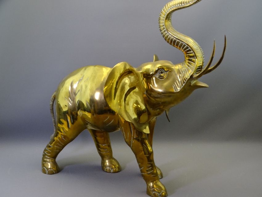 LARGE BRASS ELEPHANT ORNAMENT, 68cms H, 67cms L