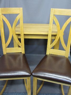 MODERN LIGHT OAK BREAKFAST TABLE & TWO HIGH BACK CHAIRS, 76cms sq the table