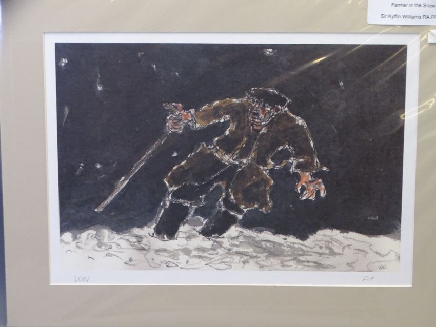 SIR KYFFIN WILLIAMS RA unframed but mounted artist's proof - 'Farmer in the snow', fully signed in pencil, 29 x 42cms