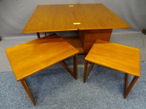 McINTOSH TEAK COMBINATION TABLE/CABINET, 55cms H, 87.5cms W, 48.5cms D (closed)