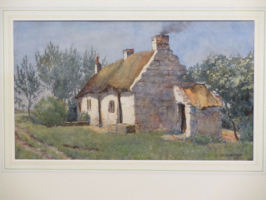 BERENGER BENGER RCA watercolour - thatched cottage and orchard, signed and dated 1885, 24 x 41.5cms