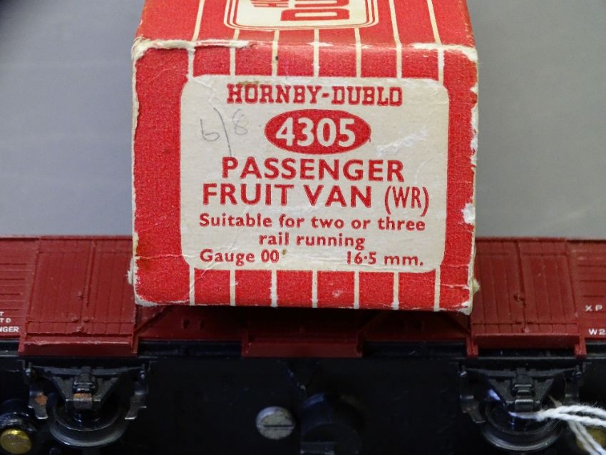 MODEL RAILWAY - Hornby Dublo, Wrenn, Dapol, Peco, Hornby goods wagons - four refrigerator vans Hornby Dublo, two Hornby Norstand wagons, one Hornby McVities, one Hornby Prime Pork, two Hornby Dublo Saxa Salt, three Hornby Dublo horse boxes SR, one Wrenn horse box, one Hornby Dublo BR horse box, one Wrenn fruit van, two Hornby Dublo fruit vans, one Peco Crawshay Brothers, four Hornby Dublo Blue Spot fish vans, three Prestwin Silo Hornby Dublo wagons, four Dapol Tunnel Cement wagons, six Mobil Oil tank wagons, eleven Hornby Dublo 12T, 13T and 16T wagons, eight Hornby Dublo 13T brown wagons, two Hornby Dublo United Glass, two Hornby Dublo 8T cattle trucks, two Hornby Dublo 20T grain wagons, three Hornby Dublo XP wagons and a Hornby Dublo Southall RU