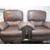 A MODERN BROWN LEATHER EFFECT THREE PIECE LOUNGE SUITE of three seater settee, 95cms H, 205cms W, 50cms seat depth and two armchairs, 100cms H, 97cms W, 51cms seat depths, all having reclining actions