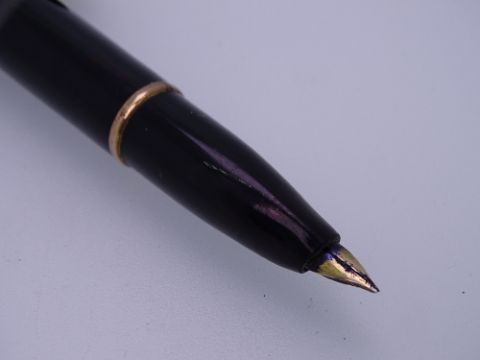 WATERMAN - Vintage (1940s-50s) Black Waterman No. 877 Taperite Citation fountain pen with gold trim, an especially wide cap band and an original 14ct gold semi-hooded nib. In an original Waterman's Service Department box and Modern (1994 but now discontinued) Red Lara Croft / Tomb Raider Waterman Kultur ballpoint pen in original box. NOS