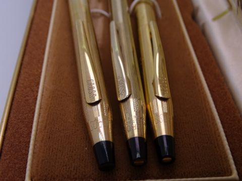 CROSS - Vintage 12ct Gold-filled Cross Century ballpoint pen and pencil set. In a Cross box and Vintage 10ct Rolled Gold Cross Century ballpoint pen. In original Cross box