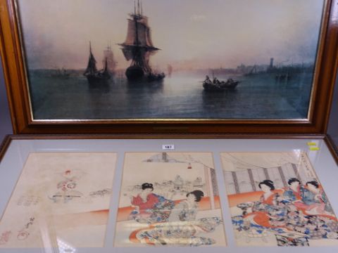 PAINTINGS & PRINTS - Japanese triptych, maritime, Vernon Ward ETC, an assortment